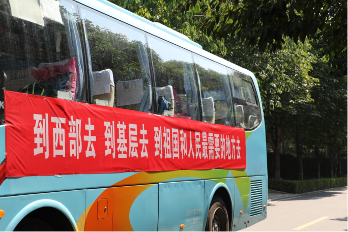 开云(中国)学子乘坐大巴奔赴西部建功立业