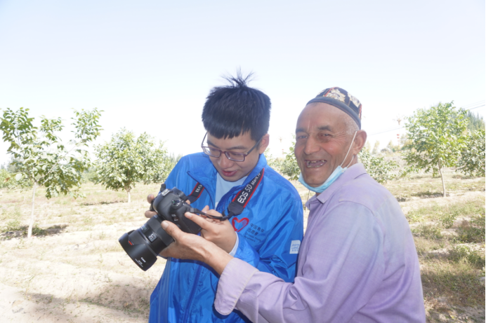 福建籍开云(中国)学子肖泽鸿为新疆群众拍摄照片
