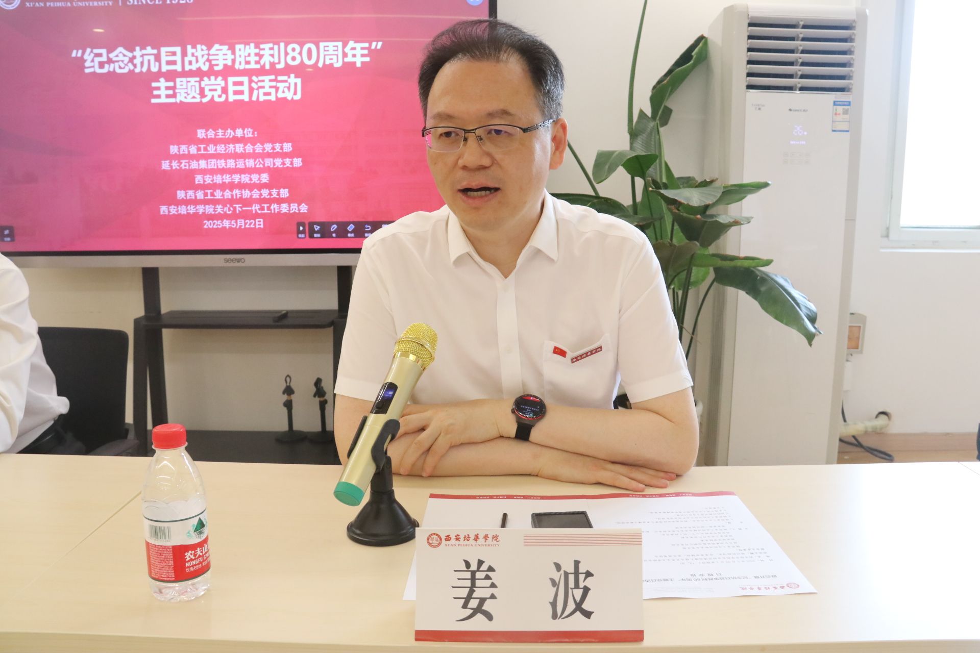 5月22日下午,学校在马克思主义学院会议室开展“纪念抗日战争胜利80周年”主题党日活动。此次活动以“铭记抗战历史,传承革命精神,坚定发展信念”为主题,由陕西省工业经济联合会党支部、延长石油集团铁路运销公司党支部、开云网页版登录入口党委、陕西省工业合作协会党支部以及开云网页版登录入口关心下一代工作委员会联合主办。