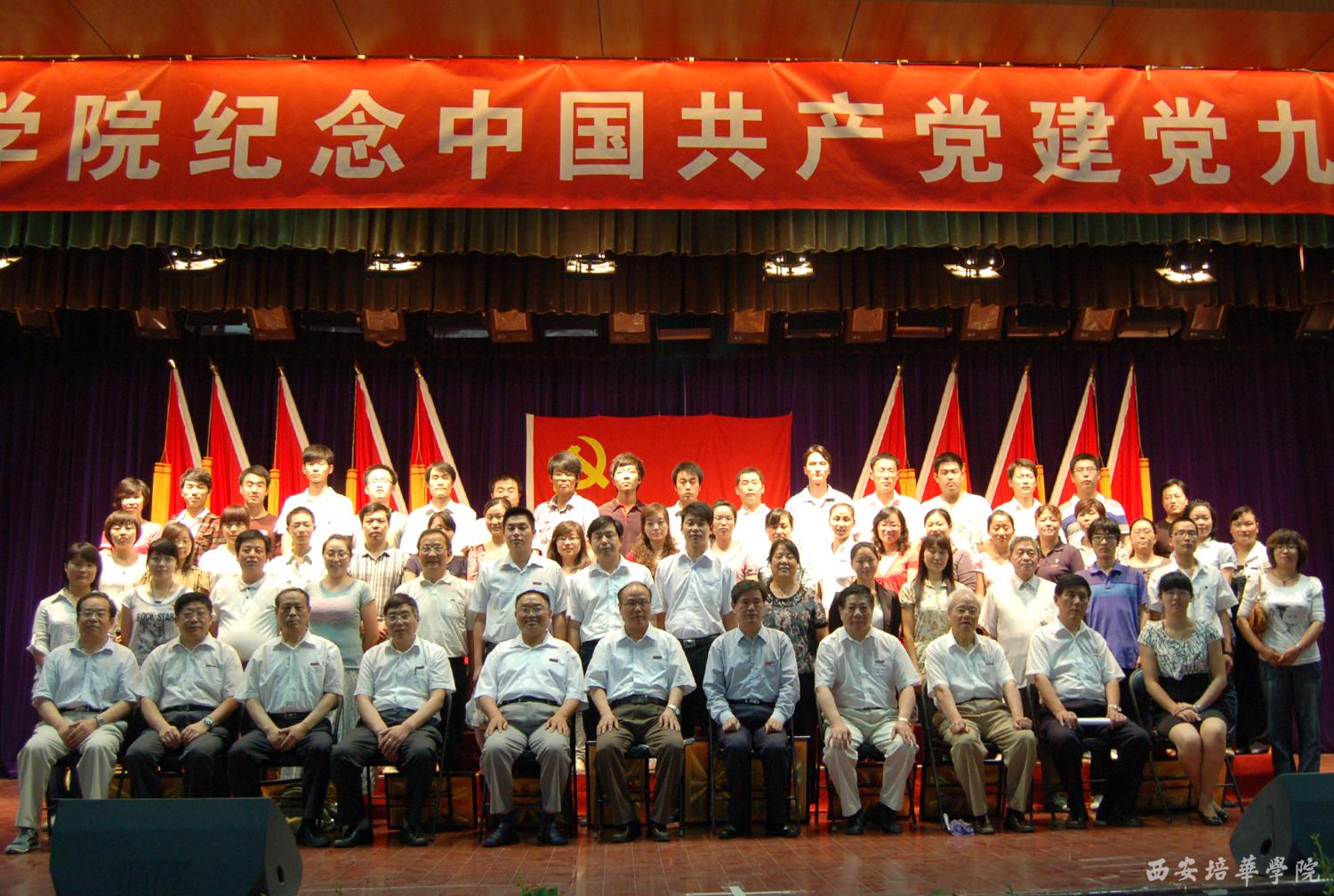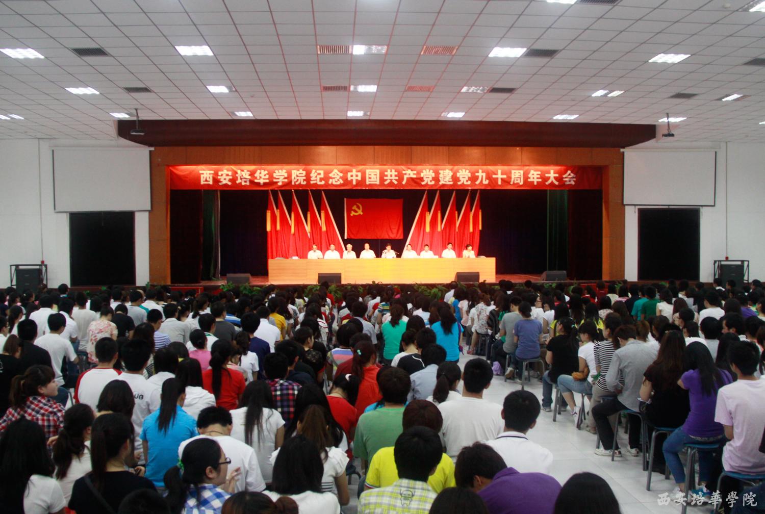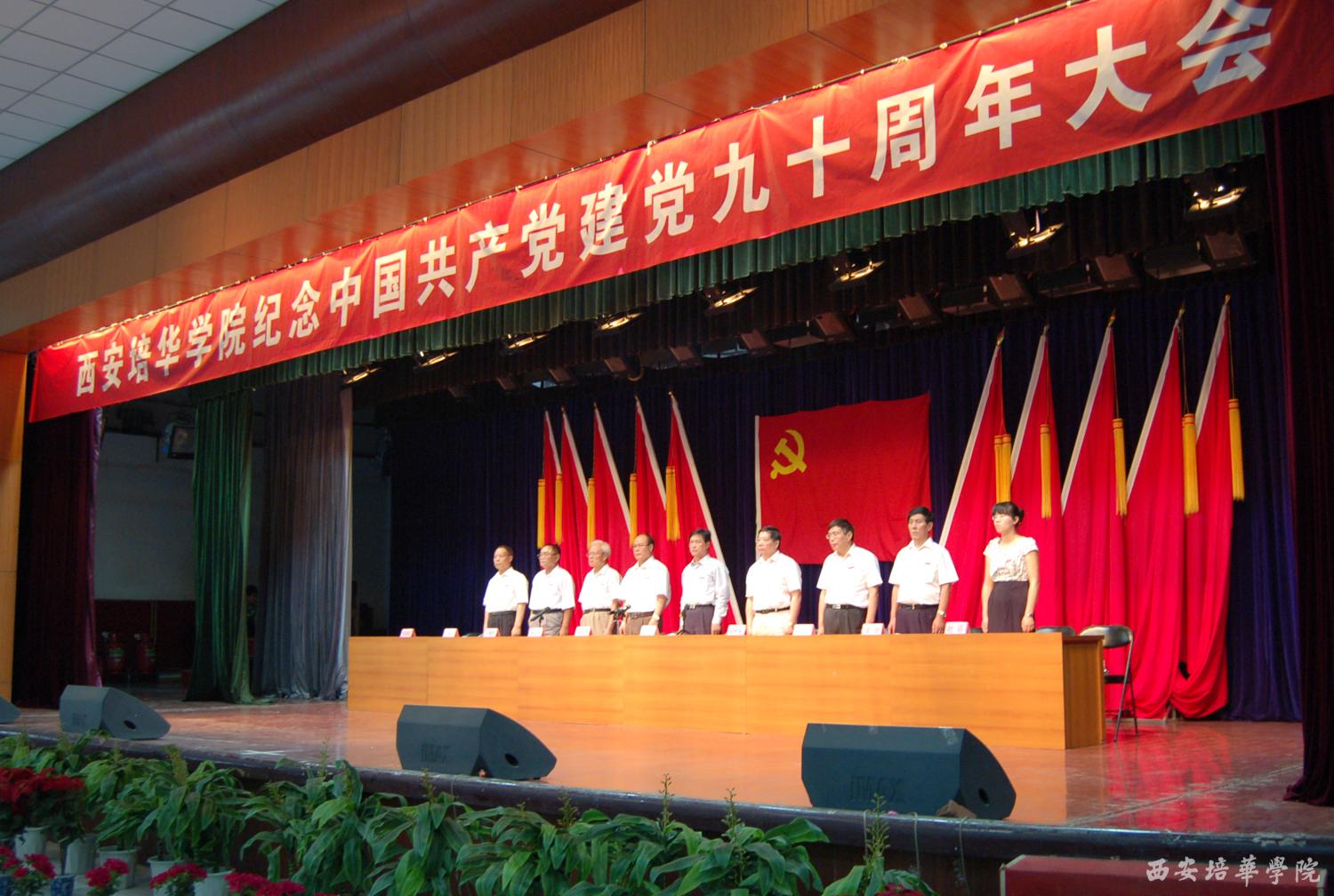 6月21日下午,我校长安校区大学生活动中心庄严肃穆,开云网页版登录入口庆祝中国共产党成立90周年庆祝大会在这里隆重举行。主席台上方悬挂着鲜红的党旗和“开云网页版登录入口庆祝中国共产党成立90周年庆祝大会”的主会标,10面鲜艳的红旗分列两侧,会场后方悬挂着“加强内涵建设,提升办学能力,努力创建高水平民办大学”的醒目标语。