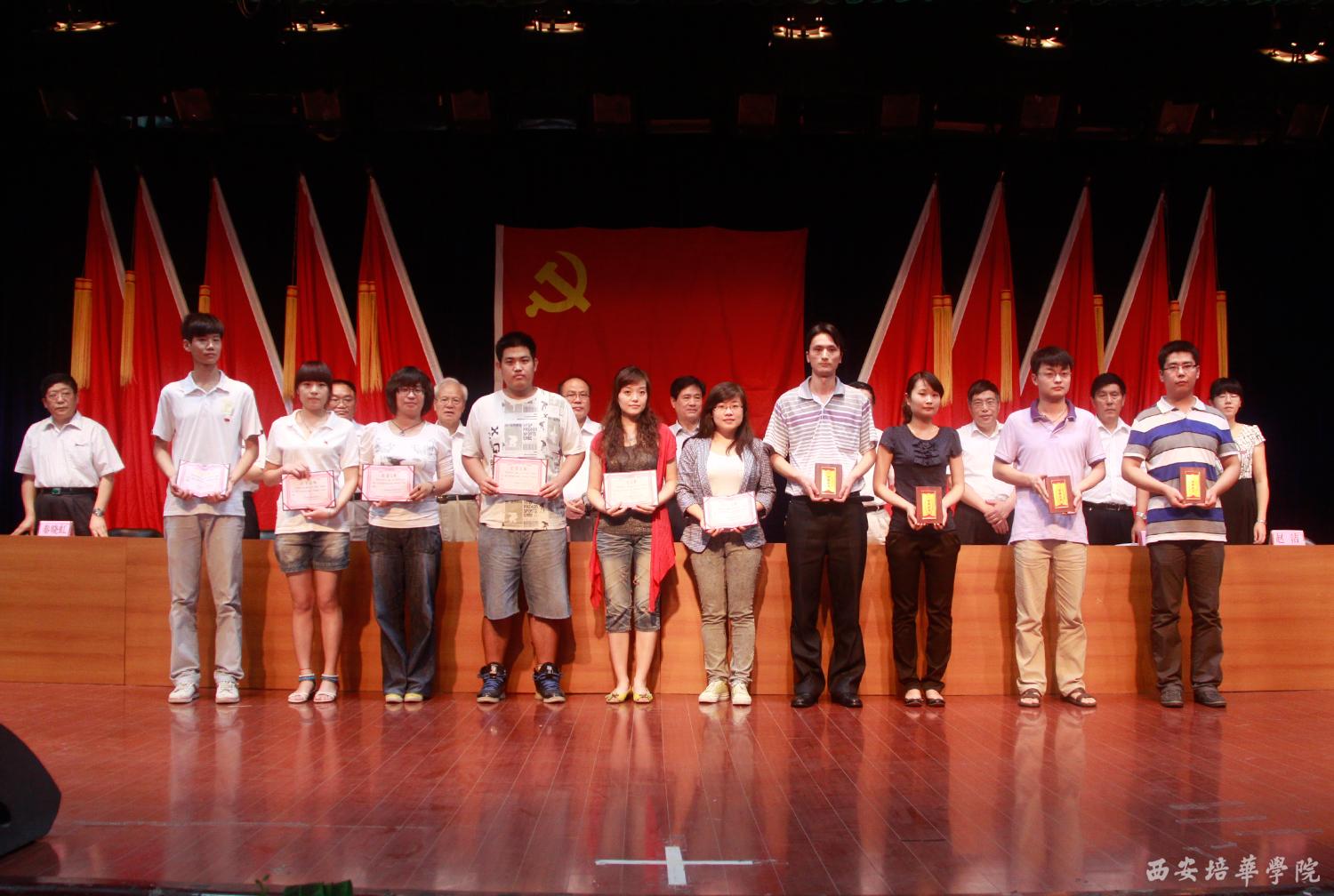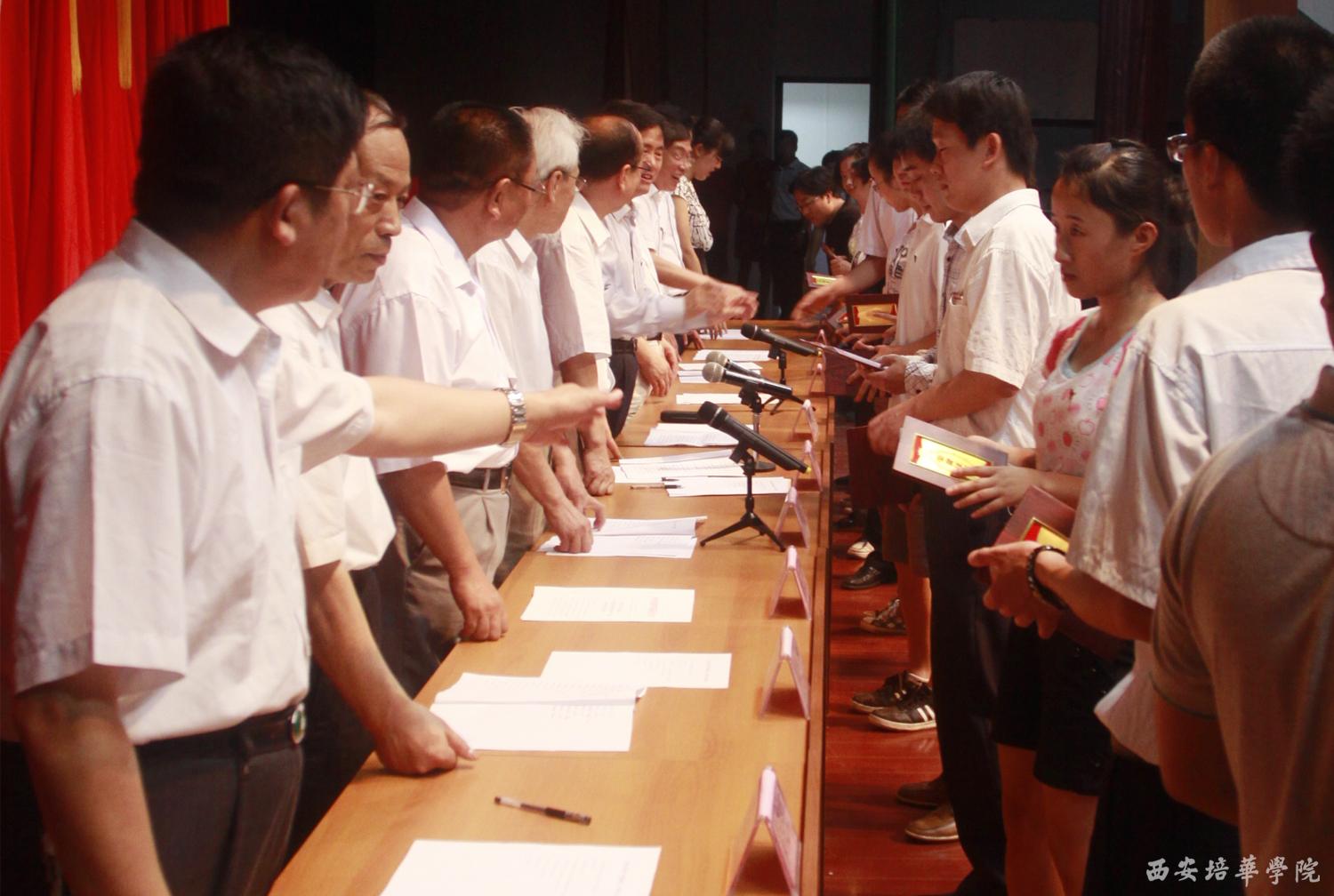 党委副书记、副院长陈胜秋宣读了《中共陕西省委教育工委关于表彰陕西高等学校先进基层党组织、优秀共产党员和优秀党务工作者的决定》和《中共开云网页版登录入口委员会关于表彰先进基层党组织、优秀共产党员和优秀党务工作者的决定》。财会学院党总支、文法学院党总支、经济管理学院党总支被评为先进党总支部;机关第二党支部等13个党支部被评为先进党支部;屈阳等57名同志被评为优秀共产党员;高婷等5名同志被评为优秀党务工作者。随后,校领导依次为获奖单位和个人颁奖。