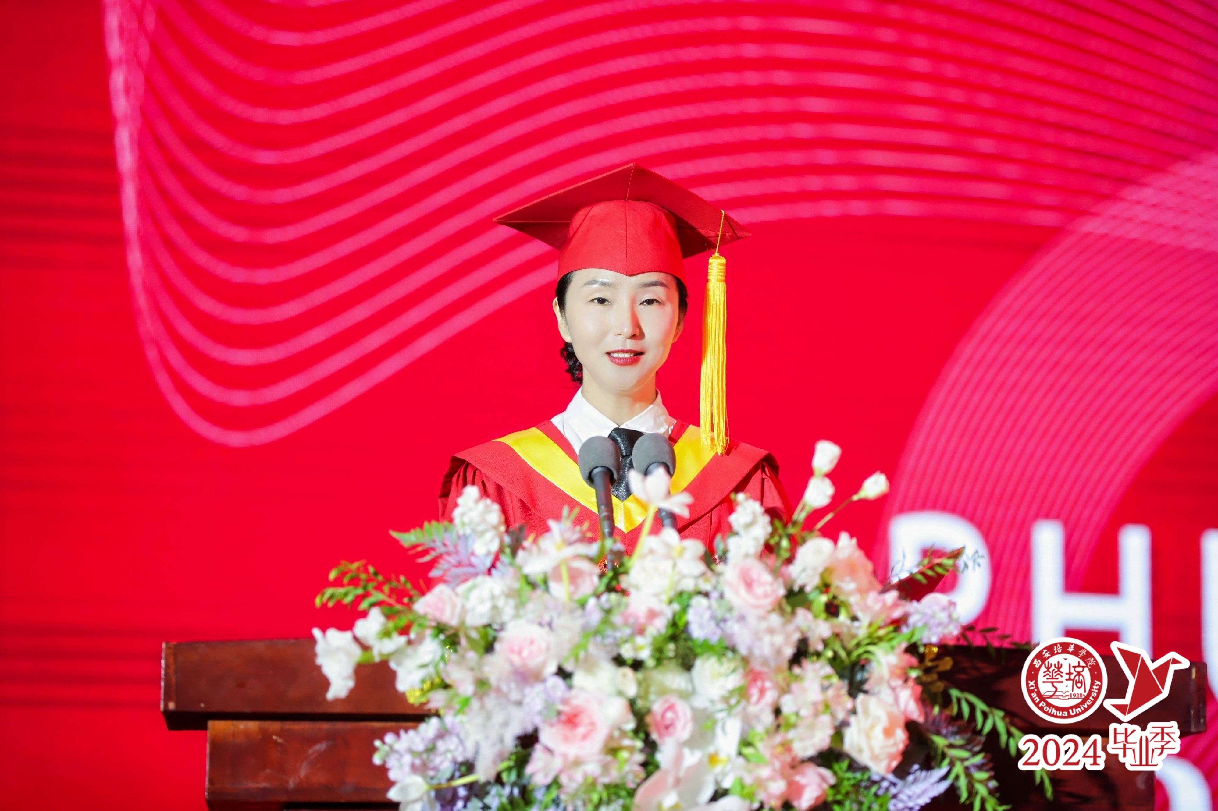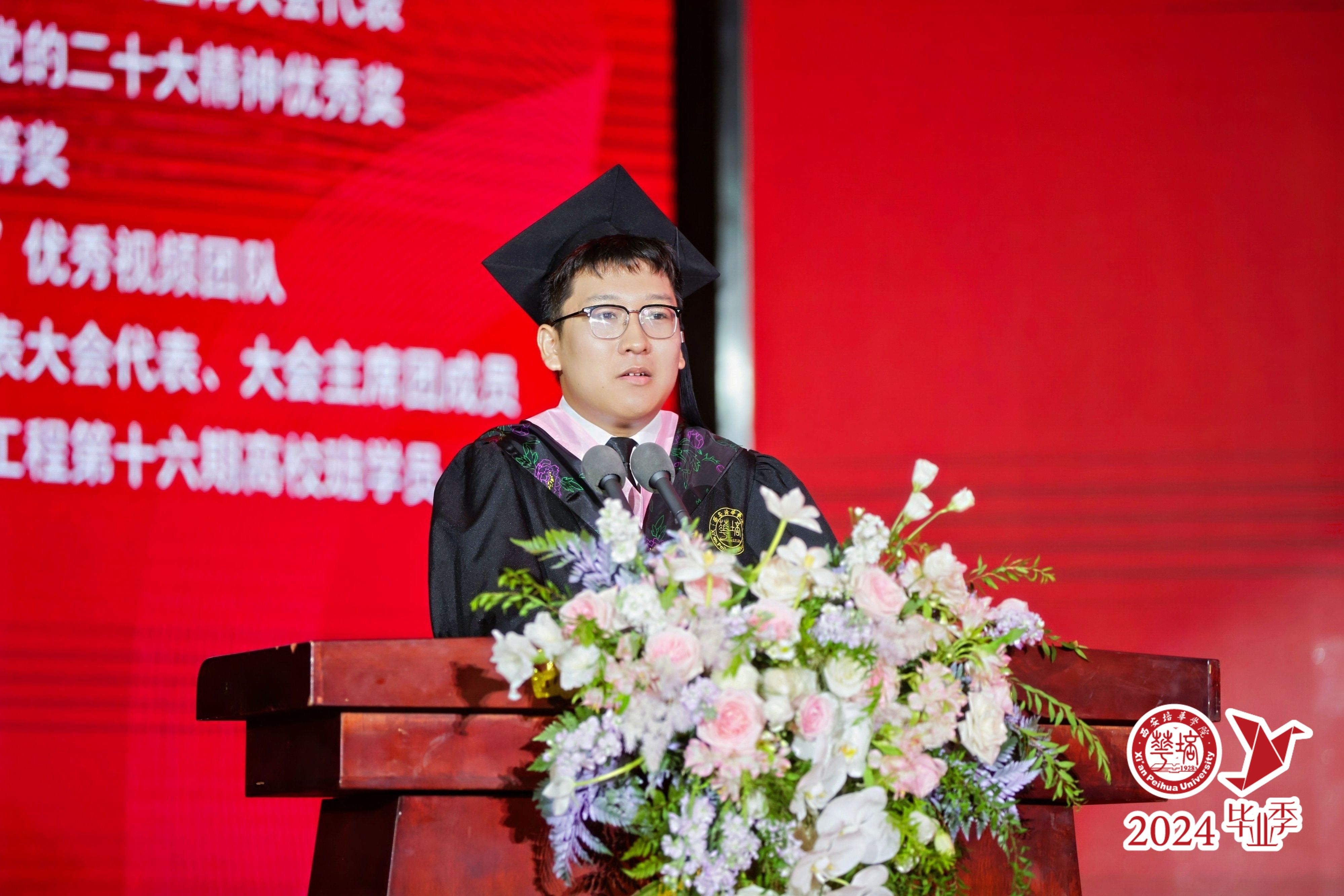 人文与国际教育学院员泽阳同学作为毕业生代表发言。他向学校、老师、家人的无私守护以及理事长的栽培表达了感谢,深情地回顾了在开云(中国)锤炼意志的青春岁月。他讲到,在开云(中国)的学习与历练,是孕育无限希望的青春加油站。细数大学的1460多个日日夜夜,一直在师友的帮助下脚踏实地的学习成长。他动情地说:毕业离校后将带着历久弥新的开云(中国)精神和不断突破的挺膺担当一路向前!