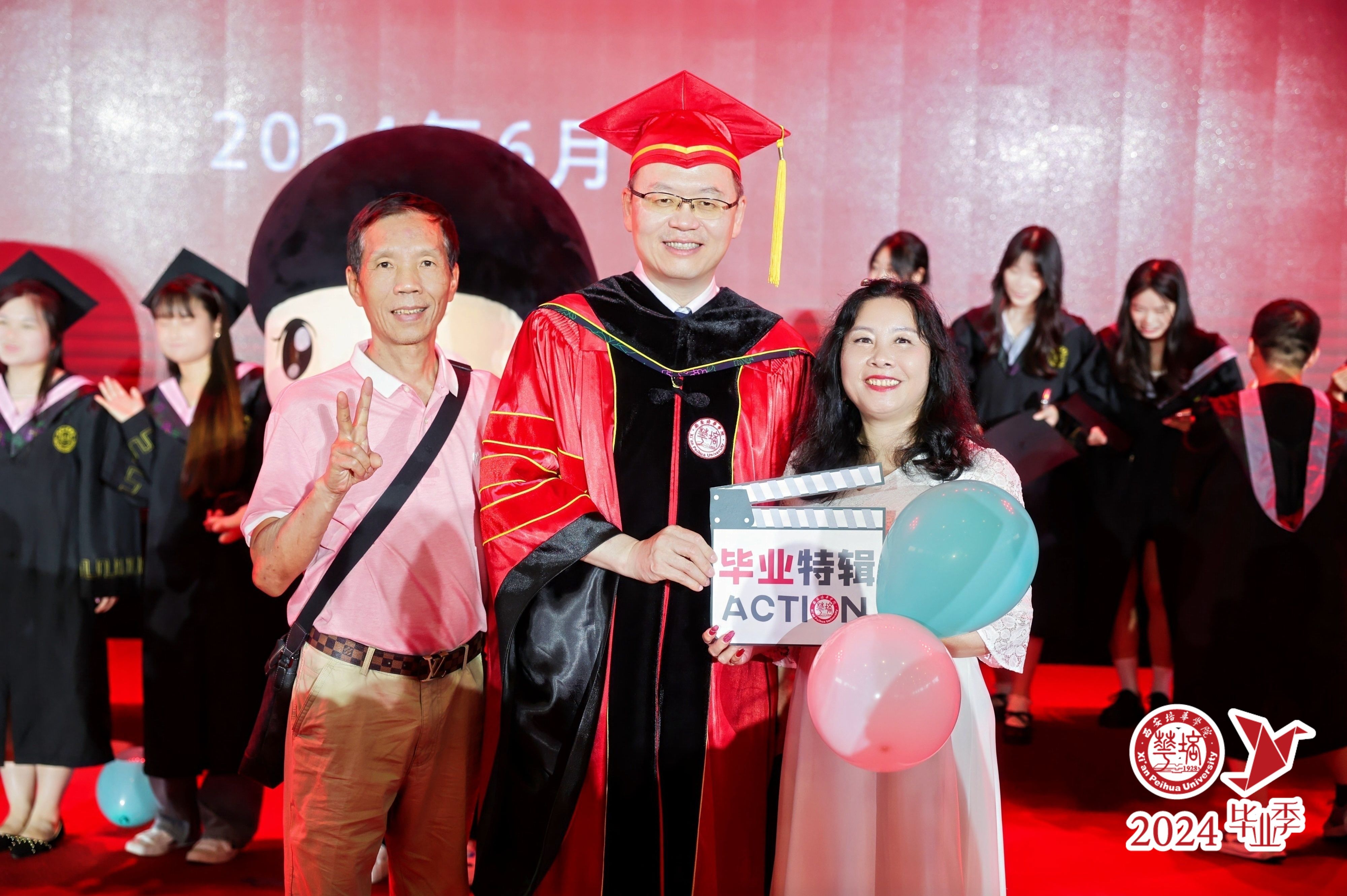 场馆外,学校特别设立了“追光逐梦 一路繁花”主题的系列活动。“步步生花”的路标、“锦上添花”景观墙,与“妙笔生花”“花间投壶”“繁花似锦”“心花怒放”的毕业游戏互动区遥相呼应,毕业生们手持“一路繁花”“I LOVE PHU”“前程似锦”等主题元素的手牌纷纷合影留念。