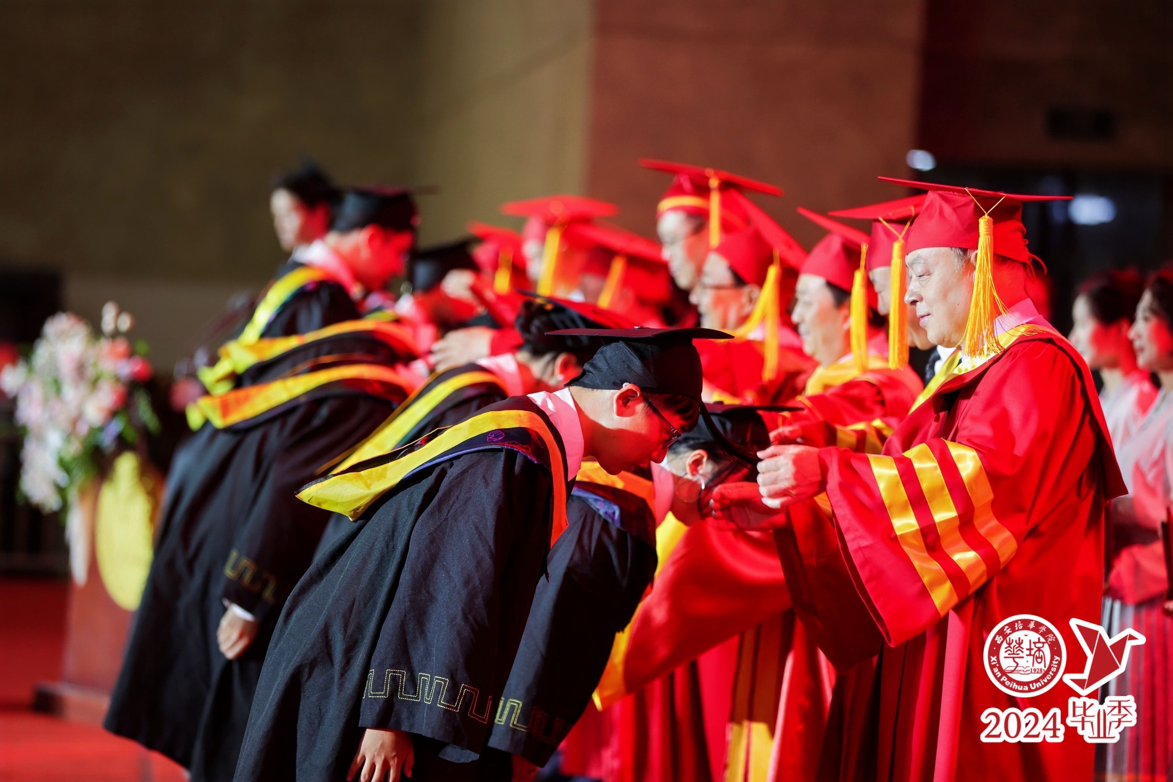 校领导为毕业生代表颁发毕业证书、学位证书,并拨穗授礼,送上最美好的祝福。