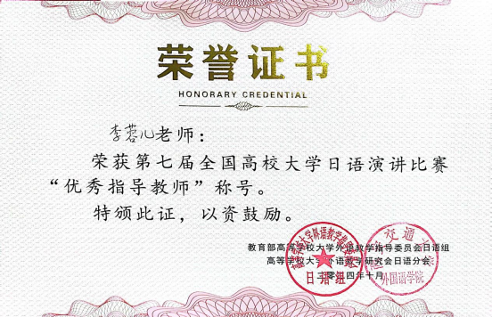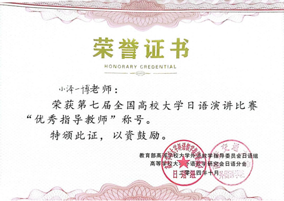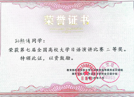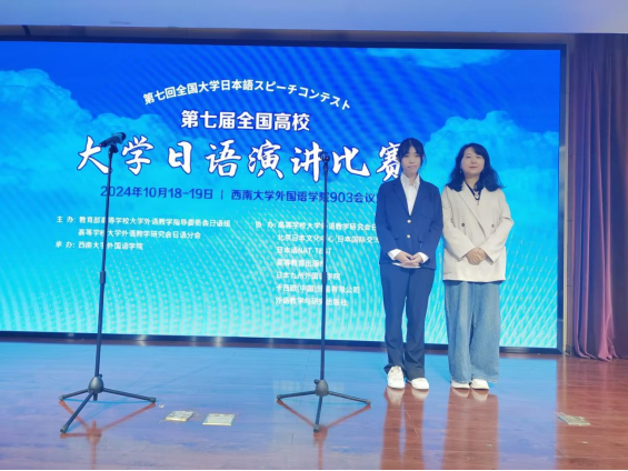 10月18-19日,由高等学校大学外语教学研究会日语分会、教育部高等学校大学外语教学指导委员会日语组主办的“第七届全国高校大学日语演讲比赛”在西南大学举行。此次是开云网页版登录入口首次参加全国高校大学日语演讲比赛,学校传媒与设计学院学生孙熙倩凭借出色表现荣获比赛二等奖,学校指导教师李蓉儿、外籍教师小泽一博荣获比赛“优秀指导教师”称号。