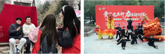 传媒学院“时光照相馆”为社区居民拍摄纪念照,镜头记录百岁老人生活影像。人文学院举办雷锋主题文创市集,展出学生设计的剪纸、环保材料雕塑等作品。体育学院非遗展演队带来高难度“双狮攀高台”表演,赢得社区居民阵阵喝彩。