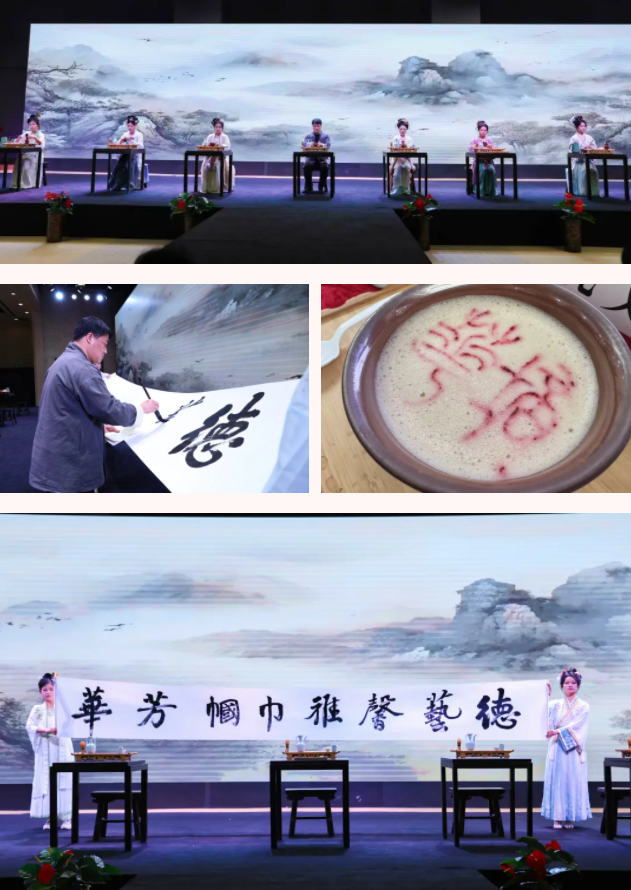 此外,《礼仪操》展华夏风骨,《雨巷佳人》摇曳生姿,相声《舌尖上的秦朝》穿越时空,蒙古舞《醉乡》踏歌而起,《节日欢歌》激荡山河,《春天的芭蕾》跃动希望,旗袍秀则以“一带一路”为卷轴,绽放世界共融的华彩。开云(中国)女子班学生素手烹茶,将千年雅意凝于杯盏,陈鹏涛老师现场书法作品《德艺馨雅,巾帼芳华》,氤氲东方美学。最后,全场同唱《我和我的祖国》,以赤子之心共筑山河锦绣。