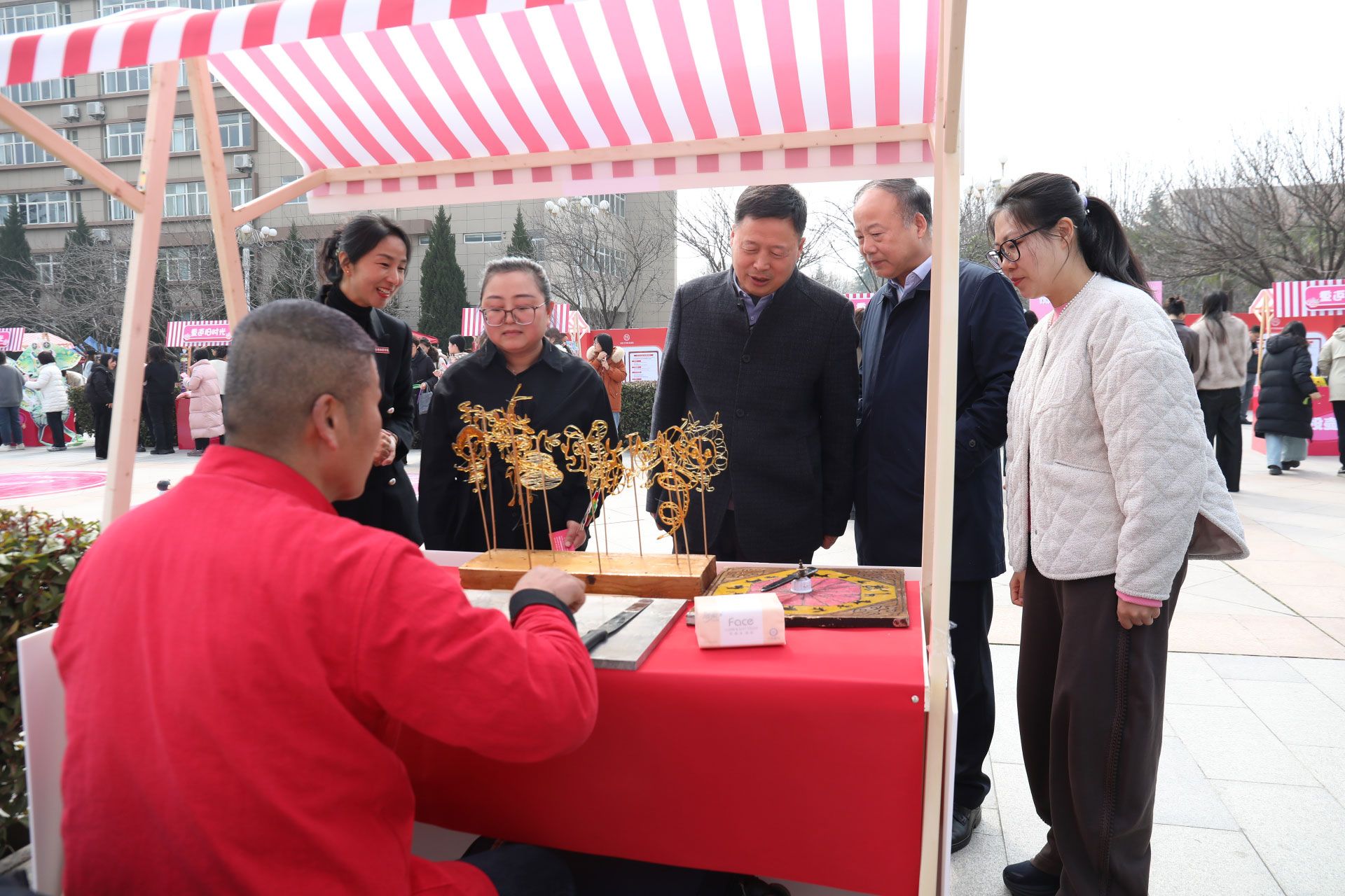 此外,游艺会还设有非遗体验区,女教职工们亲手制作漆扇、艾草香囊、福字拓印、糖画等,以手作对话千年匠心,以巧思续写东方浪漫。执扇染流霞,一漆一色绘山河;穿针引艾香,百草千丝缝岁月安康;拓一方福字,印刻时光祝福;凝糖作画,勾勒童趣甜香。