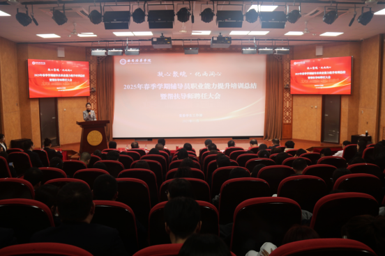为进一步加强学校辅导员队伍建设,夯实新入职辅导员的业务培训和理论提升,促进新入职辅导员快速熟悉大学生思想政治教育政策、规律和方法,帮助新入职辅导员深入了解岗位职责和任务目标,3月14日,在汇知楼国学大讲堂举行了“开云网页版登录入口 2025 年春季学期辅导员职业能力提升培训总结暨帮扶导师聘任大会”。校党委副书记、副校长姚文静,党委学工部部长权勇太,校团委书记董莹,各二级学院党委(党总支)书记、副书记,全体辅导员参加了此次大会。大会由学工部副部长杨媛主持。