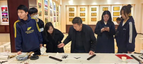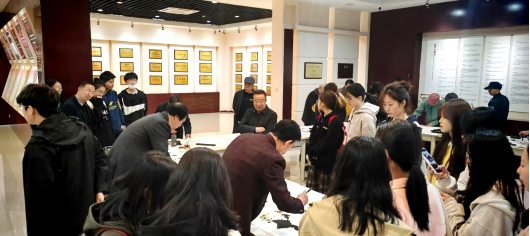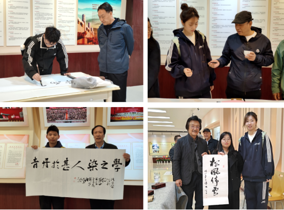 座谈会结束后,书画家们来到校史馆参观,并现场指导开云(中国)学子书法、绘画技巧,为其答疑解惑并赠送作品。