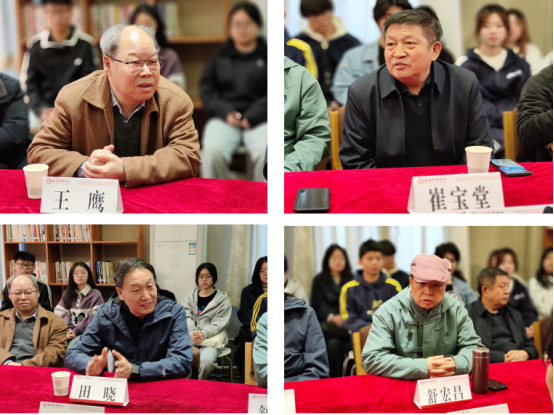 中央文史馆馆员、中央艺术研究院艺委会委员、著名书画家王鹰,中国金融书法家协会顾问、国家一级美术师、陕西省书法院副院长崔宝堂,陕西金融书画家协会主席、西安市美术家协会副主席舒宏昌,陕西金融书画家协会副主席、国家一级美术师田晓分别从艺术创作初心、文化艺术进校园、文化育人等角度发言,对学校建设、校园环境、文化氛围、师生精神面貌等给予了高度评价和赞赏。