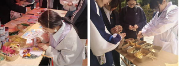 活动中,志愿者通过图文展示清明节起源,宣讲非遗法律知识,并借助互动问答,引导师生在手工体验里认知非遗价值。在扇绘清明时,同学们以团扇为画布,于创作中感受传统节日与春日交融的文化魅力。制作香囊过程中,师生装填艾叶等香料,体悟古人寄情传统,增强文化自信。在 “见字如晤” 环节,同学们写下对先烈伟人的敬意:“如今盛世,秉持信念逐梦”。
