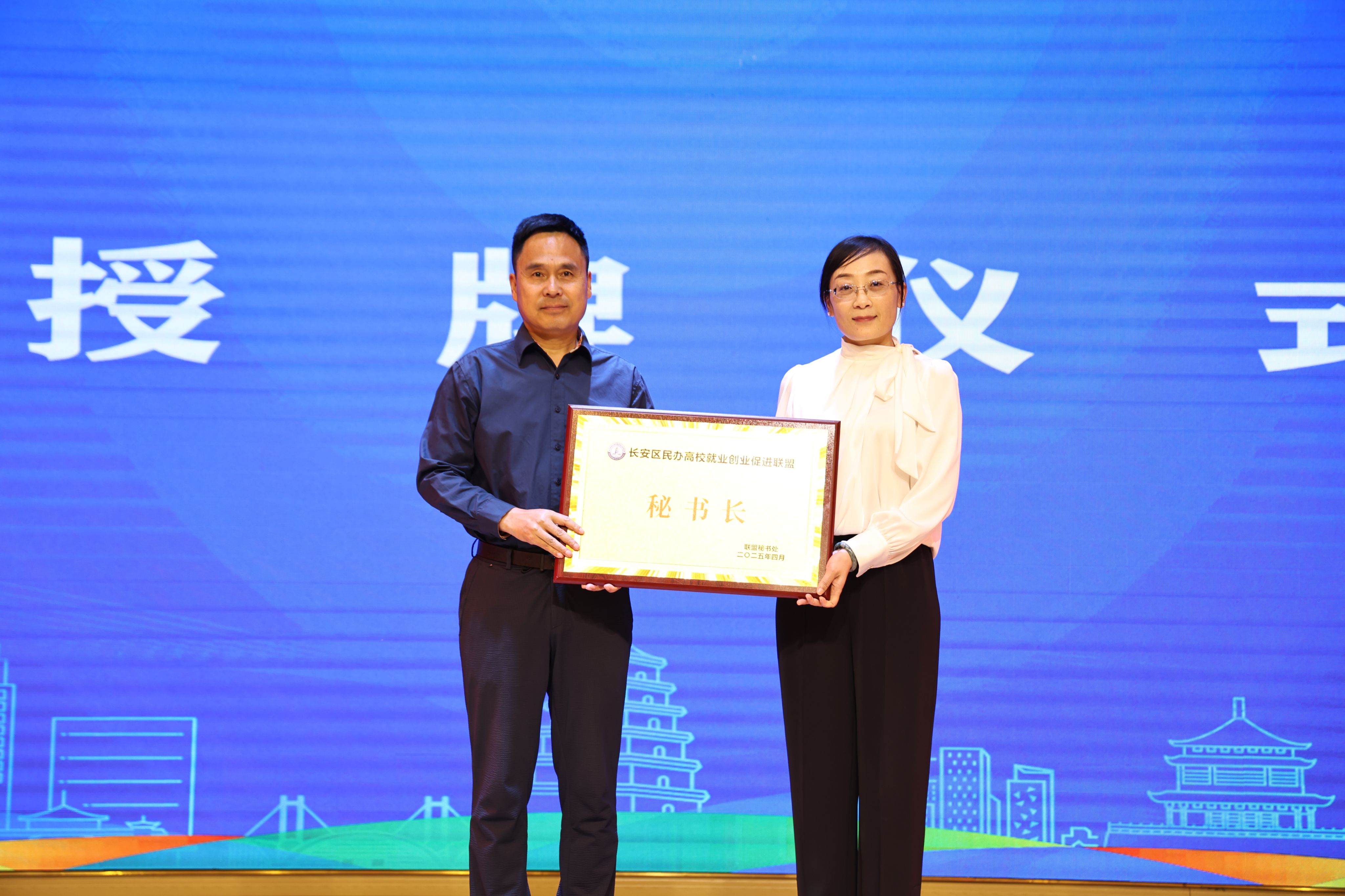 西安市职业介绍服务中心党委书记、主任吴强宣读了联盟成立文件。长安区委常委、常务副区长冯楠宣布“长安区民办高校就业创业促进联盟”正式成立。