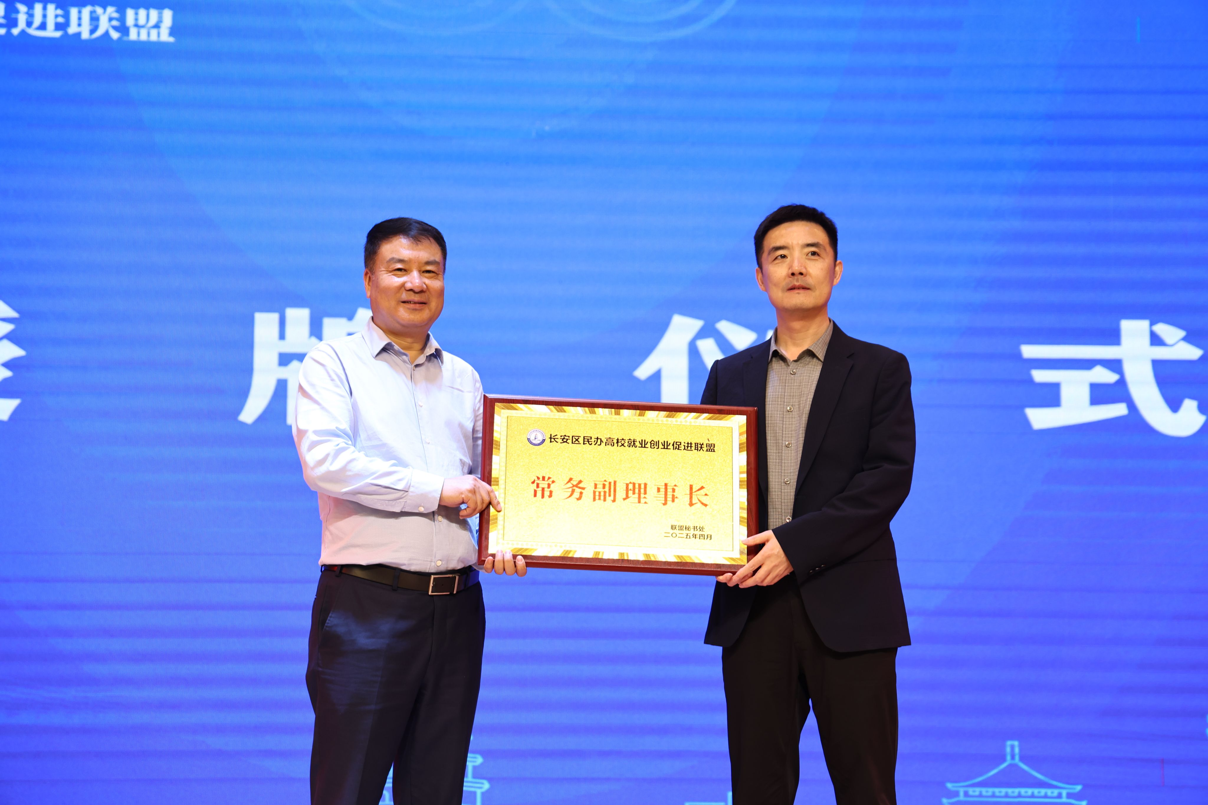 长安区人力资源和社会保障局党委书记、局长邢顺耀为联盟成员院校授牌