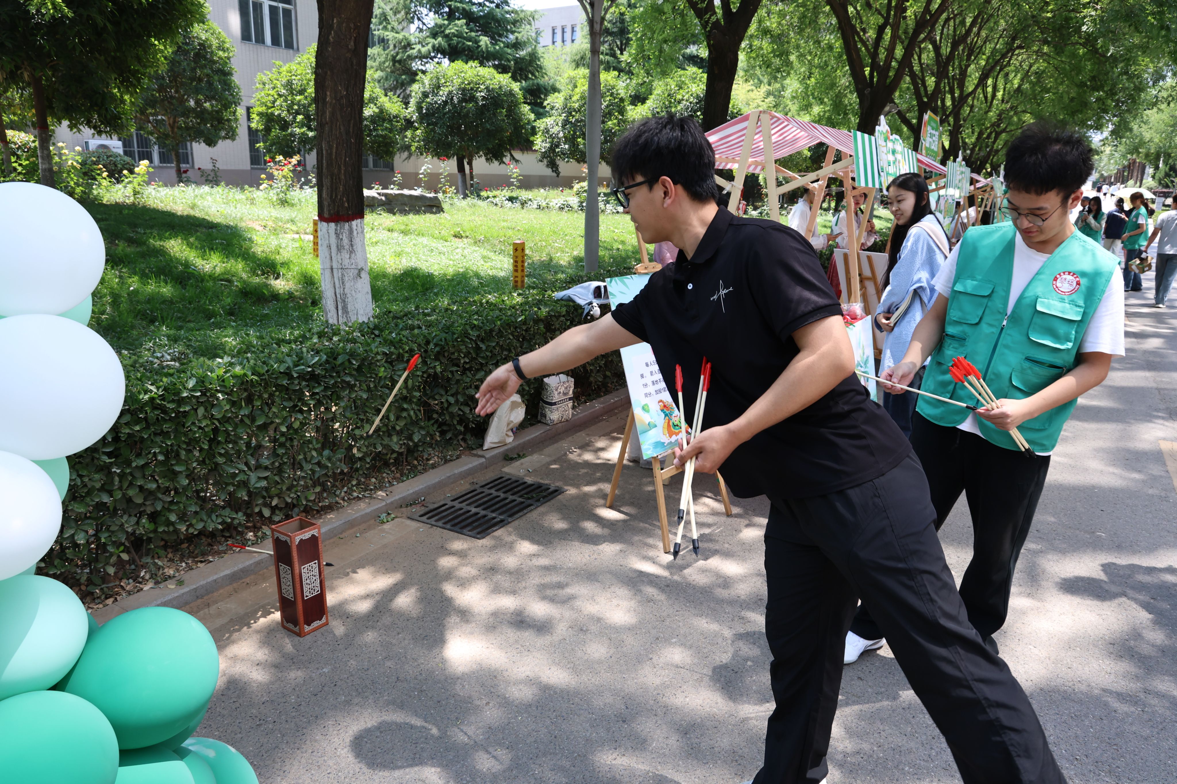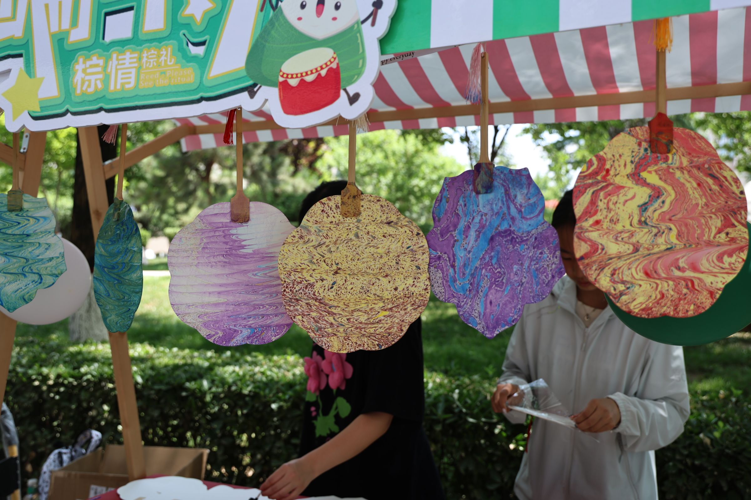 投壶、蹴鞠、漆扇、粽子彩绘等创意游戏区笑声不断。在“粽子彩绘”摊位,学生们用丙烯颜料在素粽上描绘卡通形象、山水图案,让传统美食变身艺术品。集齐三枚游戏印章即可兑换粽子的环节,更将活动推向高潮,蜿蜒的领取队伍彰显出青年学子对传统文化的热情。