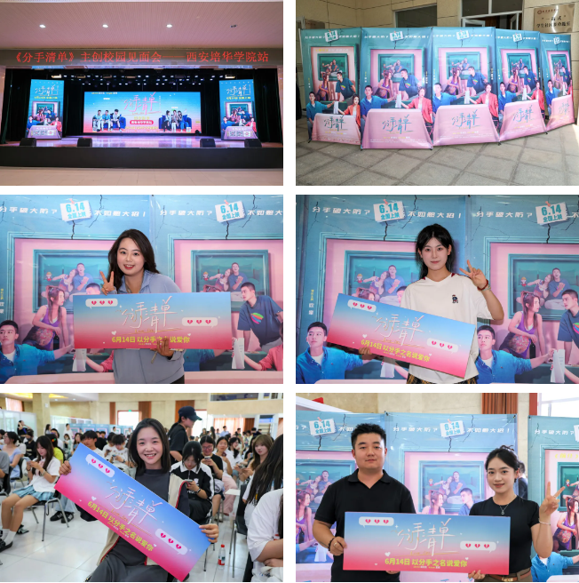 当日下午2时,活动中心化身情感剧场。精心设计的入场券、走廊两侧的电影海报展架、主题合影框前跃动的身影,无不彰显着这场活动的仪式感。随着影片开场,马天泽与夏沫在高档餐厅完成“分手作业”的荒诞剧情引得全场爆笑,而当两人相拥告别时,黑暗中此起彼伏的抽泣声与手机灯光汇成的星海交织,映照出一张张泪中带笑的面庞。