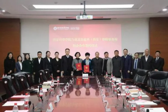 与陕西省律师协会、陕西省纳税筹划研究会、西安思迈尔财税管理有限公司等签订战略合作协议,开展产学研合作项目,共同开展人才培养、课程开发、实践教学等工作,实现资源共享、优势互补。