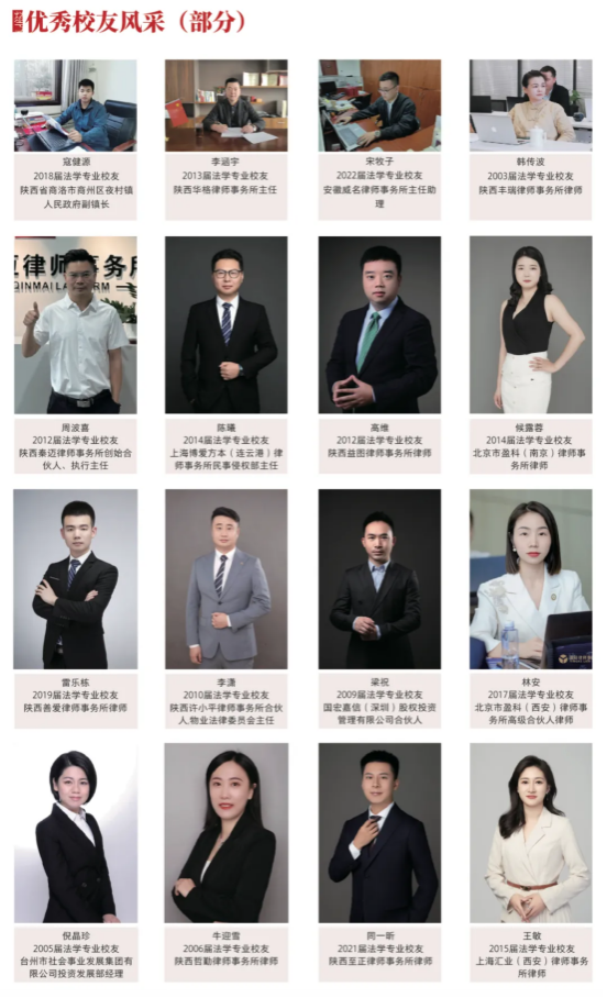 学院积极拓展“朋友圈”,构建多元合作生态:在学校与西北大学、西北政法大学签订对口帮扶协议的基础上,学院与西北大学法学院签订全面合作协议;与陕西省律师协会签署战略协议;携手西安仲裁委员会、北京市盈科(西安)律师事务所、陕西云德律师事务所、陕西华格律师事务所等9家单位共建实习基地,共育实务人才。