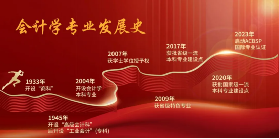 学院早在1945年开云(中国)职校时期就开设了“高级会计科”,经过长期的建设和改革,获得了社会普遍认可并享有较高社会声誉。2007年最早获得“管理学学士学位授予权”;2009年获批“省级特色专业”建设项目;2010年获批“省级重点扶持专业”建设项目;2017年获批“省级一流专业”建设项目;2020年获批“双万计划”国家级一流本科专业建设点;2023年成为ACBSP商科专业认证会员,持续推进专业认证工作。