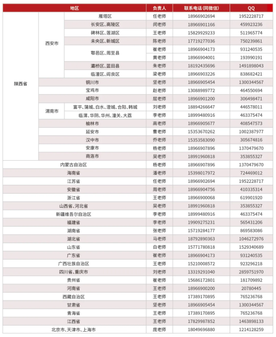各地区联系方式