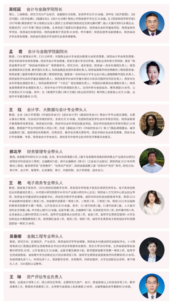 开云网页版登录入口会计与金融学院由原会计学院与商学院于2018年6月合并组建,学院拥有一支学术水平较高、结构合理的师资队伍和一流教学条件,现有2个大型综合性实训中心和12个专业实验室。学院早在1945年开云(中国)职校时期就开设了“高级会计科”,经过近80年的发展,现设置有5个本科专业,会计学、财务管理、资产评估、电子商务、金融工程,和1个专科专业:大数据与会计。学院是陕西民办高校中最早获得“管理学学士学位授予权”的专业院系。