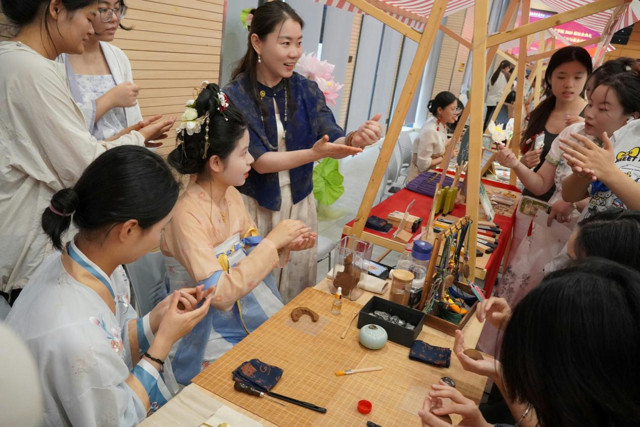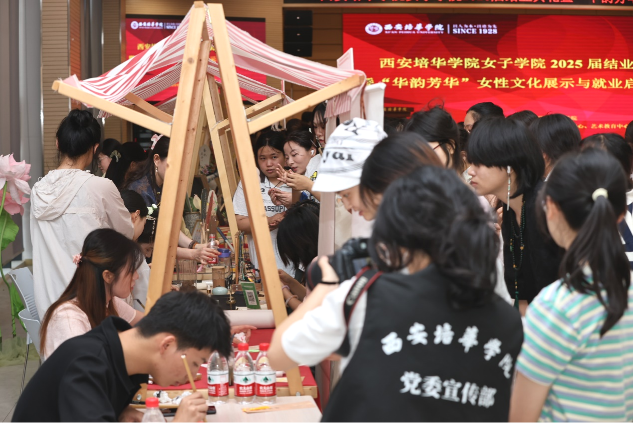 本次活动特设“职启未来”企业招聘区,7家知名企业提供涵盖文化传媒、金融科技、教育培训、医疗健康等领域的158个优质岗位,满足毕业生多元化需求。同时,精心打造“华韵芳华”六大女性文化展区,带来沉浸式文化体验:“纸上生花”“千千结语”“靛蓝之韵”“茗心雅叙”“香韵流芳”“墨舞芳华”将中华优秀传统文化技艺与现代设计相结合,引领参与者沉浸式感受盘花、绳结、扎染、茶艺、香道和书法,展现传统在现代女性生活中的创新。