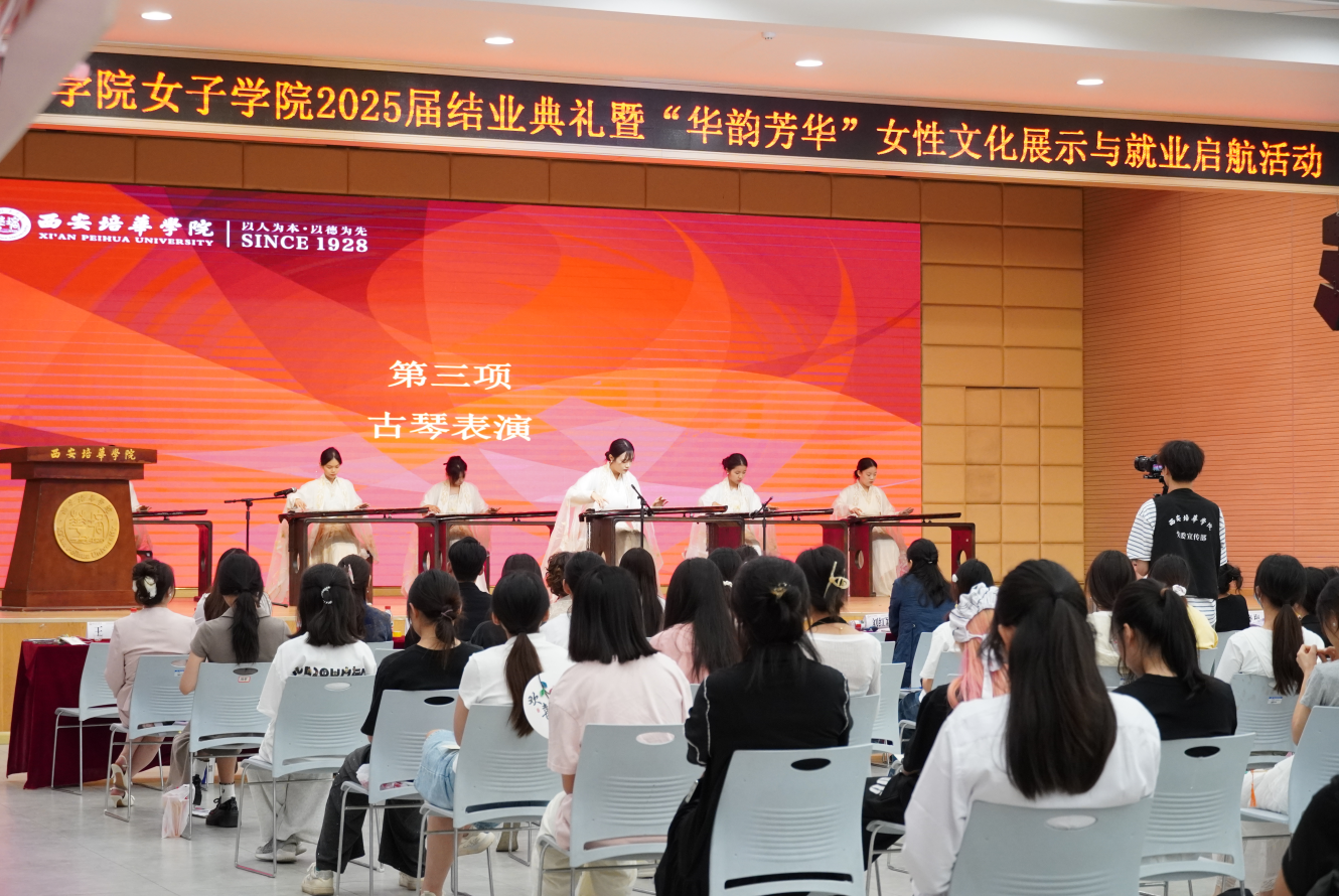 一场古色古香的古琴表演缓缓拉开帷幕,悠扬的琴声如潺潺流水,为心灵带来一场静谧的洗礼,也为即将开启的毕业时刻增添了一份庄重与典雅。