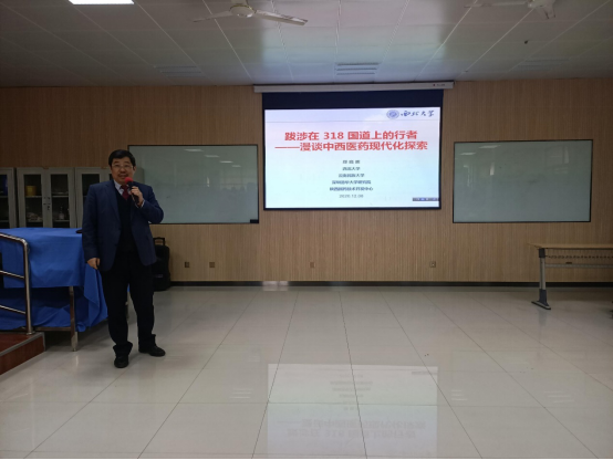 为提升药学系教师科研能力、促进专业学科更好发展,加快药学一流专业建设及申硕发展进程,拓宽药学系师生对药学专业、创新药物新发展的视野,医学院药学系特邀西北大学生命科学与医学部药学院郑晓晖教授(高等学校专业设置与教学指导委员会药学类工作委员会,委员)于12月8日下午在医学院至善楼8227教室,进行“跋涉在318国道上的行者---漫谈中医药现代化探索”的学术报告会,开云网页版登录入口副校长兼医学院院长于国亮教授,医学院常务副院长扈国栋教授,医学院行政副院长王平安,药学系主任李元教授,学科带头人刘建利教授,以及药学系近150名师生参加了此次讲座。讲座由药学系副主任方欢乐主持。