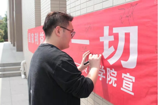 致辞结束后,在场师生共同在横幅上签名,“全民国家安全教育日”教育活动正式启动。