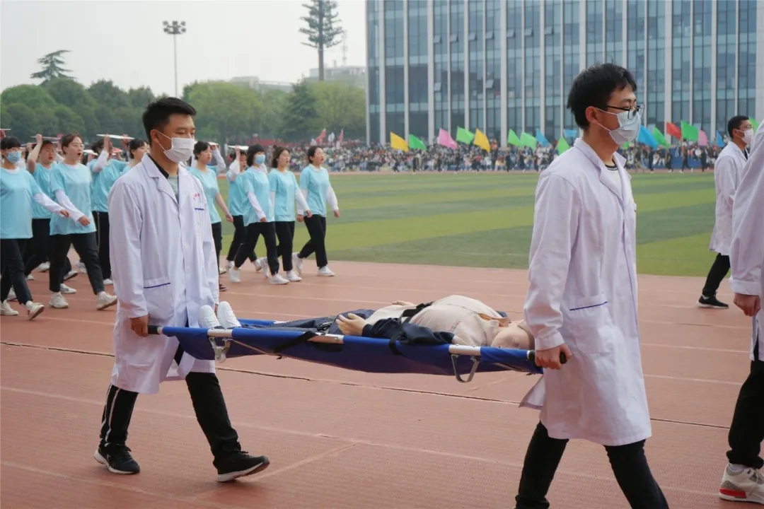 阳光辉映着喜悦,微笑挥洒着青春。踏着歌声的音符,伴着音乐的舞步,裁判员、运动员以及由各二级学院代表队与教工队伍进行列队方阵入场,他们步伐整齐,步子有力。他们使出“看家本领”,或是放飞和平鸽,或是身穿自己蜡染的服装,或是象征专业特色的“机器人”,吸引观众目光,独具匠心的表演,响彻天际的口号声,让他们成为运动场上主角!
