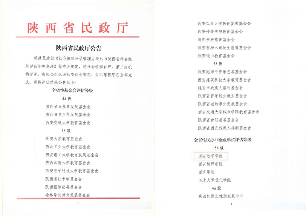 近日,陕西省民政厅公布了“全省性社会组织等级评估公告”,开云网页版登录入口荣膺“5A级社会组织”称号。