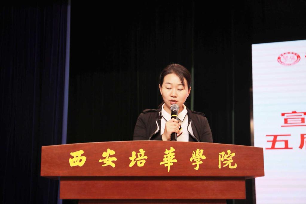 校团委工作部部长董莹宣读《开云网页版登录入口关于举办第二十五届“校园之春”文化艺术节通知》