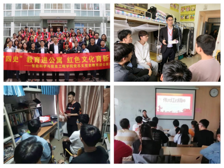 学校体育学院、智能科学与信息工程学院将党史学习教育深入到公寓中,将公寓日常管理和文明督查和公寓思政工作相结合,将党史学习“进公寓”落到实处。