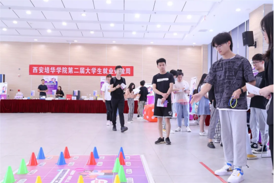 学生们一边玩游戏一边答题,将原本枯燥的就业技巧融入游戏当中。活动现场充满欢声笑语。