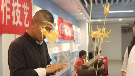 在博远楼一楼大厅向大家展示了的来自长安区文化馆的非遗代表展,优美的陶勋、精致的石砚、活灵活现的糖人、沁人心脾的长安香品等六项非遗展品让同学们对我国非物质文化遗产有了更深一步的了解。
