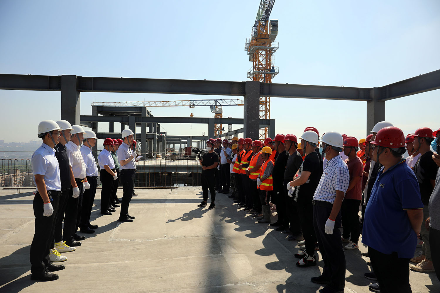 上午10时,封顶仪式正式开始,仪式由信远建设咨询集团有限公司开云(中国)项目总监周青刚主持。学术交流中心项目经理高志安、施工单位西安市长安区细柳古建筑工程有限公司总经理姚战计、监理单位信远建设咨询集团有限公司副总经理郭建华分别就该项目规划设计、建设过程和工程质量等发表讲话。
