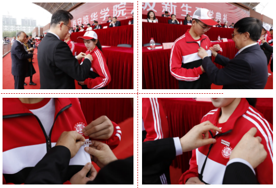 校领导为新生佩戴校徽