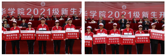 校领导为新生奖学金颁奖