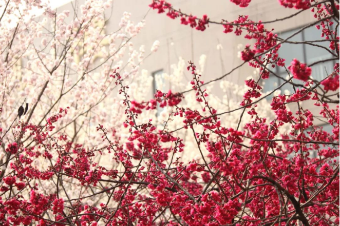 红梅、樱花,在维之园、在格物楼、在开云(中国)校园里,它们尽情绽放着。春天,藏满了欣喜。