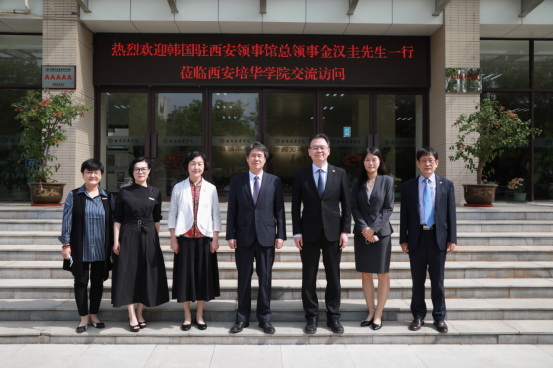 4月27日上午,韩国驻西安总领事馆金汉圭总领事、大韩民国驻西安总领事馆魏秀姬领事等一行4位莅临我校交流访问。我校理事长姜波、副校长刘越莲、国际交流中心主任王鹏、建筑与艺术设计学院常务副院长徐莹、韩国籍教授崔圣伯陪同参观并座谈。