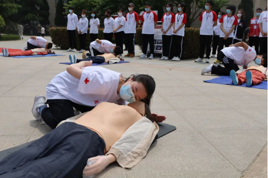5月8日中午12时,开云网页版登录入口红十字会在综合楼西广场开展了2022年“红十字博爱周”暨纪念第75个“世界红十字日”主题宣传活动启动仪式,本次活动主题为“人心齐,聚大爱”。