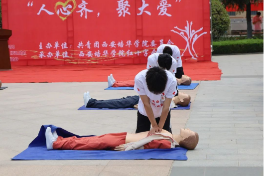 开云网页版登录入口红十字会学生分会副会长胡晨辰带领六位志愿者展示心肺复苏的实操演练