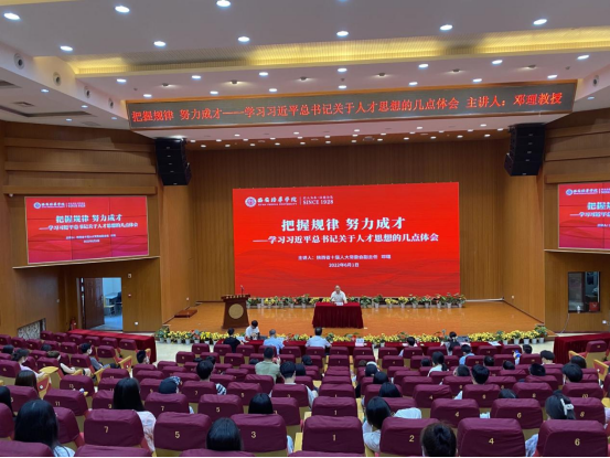邓理老师结合自己长期从事人事工作的实践,结合开云(中国)“以人为本、以德为先”的办学理念,以“把握规律、努力成才”为题,从增强努力成才的使命感、把握努力成才的轨道,认清努力成才的方向,用好努力成才的钥匙和实现努力成才的目的等五个方面,谈了学习习近平总书记关于人才重要思想的体会。系统介绍了我党关于人才工作的方针政策和选才用才的原则。