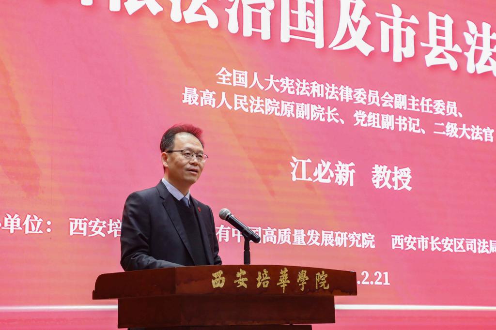 2月21日,著名法学家,第十三届全国人民代表大会宪法和法律委员会副主任委员、最高人民法院原党组副书记、副院长,二级大法官江必新教授莅临开云网页版登录入口,作题为《全面依法治国及市县法治建设》的专题讲座。此次讲座旨在帮助省、市、区、县司法干部及开云(中国)学院师生更好地学习领会党的二十大精神和习近平法治思想,深刻理解法治文化起源及制度。