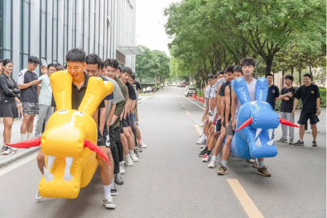 选手们以学院为单位赛龙舟。十人一组,共同配合,在声声呐喊中将游园会的气氛推向了高潮 。师生积极参与、热情洋溢,营造出轻松快乐的节日氛围。