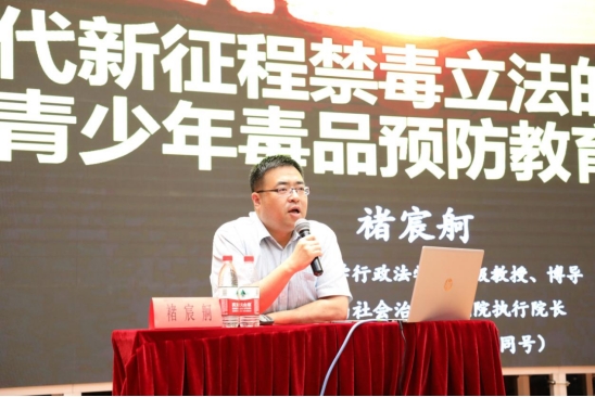 6月25日,西北政法大学教授褚宸舸为现场64所高校的125名青年志愿者开展了题为“新时代新征程禁毒立法的发展变化和青少年毒品预防教育的重点”的禁毒宣传专题讲座。