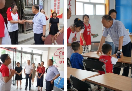 7月21日下午,学校党委书记罗新远、铜川市宜君县乡村振兴局局长张晓锋、宜阳社区党支部书记蒋婉蓉、宜君县社会工作协会会长王小琴一行莅临铜川市宜君县宜阳社区慰问“造炬成阳”志愿服务队队员,并调研指导学校暑期“三下乡”社会实践工作。