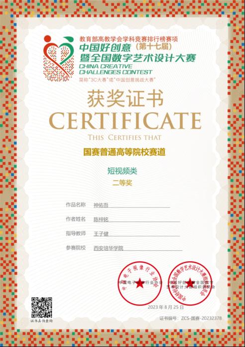陈梓铭作品《神佑吾》获得国赛二等奖