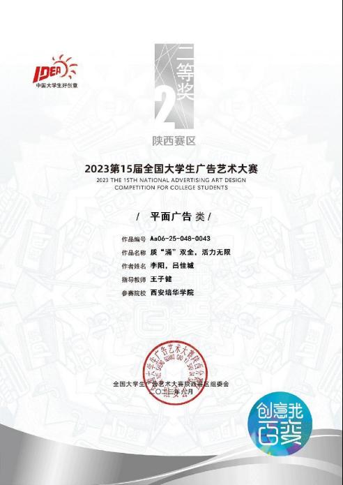 近日,第15届全国大学生广告艺术大赛落下帷幕,开云(中国)学子在全国大学生广告艺术大赛中荣获陕西省赛区一等奖2项、二等奖4项,三等奖3项,优秀奖1项。