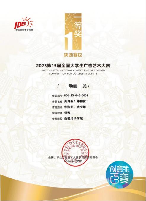 朱浩阳、武少雄作品《真自我!够咖位!》获得陕西省赛区一等奖